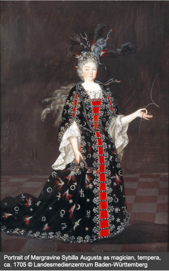 She was also devoted to her children’s happiness and threw costume parties, dressing herself and the young Margrave as Harlequins. On Lugwig George’s 11th birthday, she commissioned her court composer Johann Caspar Ferdinand Fischer (1656-1746) to serenade the prince with the cantata ‘O Titan, Beautiful Sunlight’.