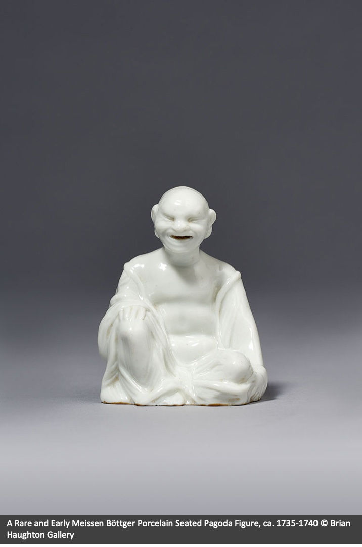 In addition to these purchases, Sibylla Augusta was gifted a Meissen armorial porcelain service from Augustus the Strong himself on a visit to Schlackenwerth in 1717. They would continue a lifelong friendship and the Margravine’s collection would continue to grow over the years with early porcelain additions such as the Meissen Böttger Porcelain Seated Pagoda Figure.