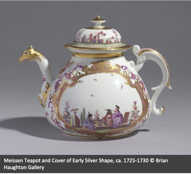 In letters written to her Schlackenwerth administrator Johann Jacob Bettmann, she instructed the purchase of Meissen porcelain including: six chocolate cups, Japanese figures and other oriental miniatures, three sets of cutlery including spoons, knives and forks, coffee and tea services, wares in blue and white, as well as gold and enamelled decoration such as the Meissen Teapot and Cover of Early Silver Shape.